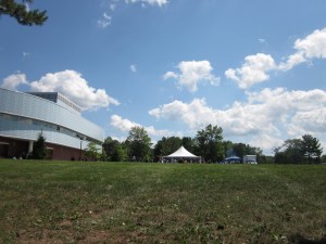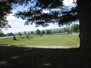 View of the campus’ fields and mountains surrounding the campus in the distance.