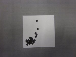 The class was based around the ‘dot’ and its relationship within a frame. We had to compose different formations using different sized black dots within the frame. Beats debits and credits!