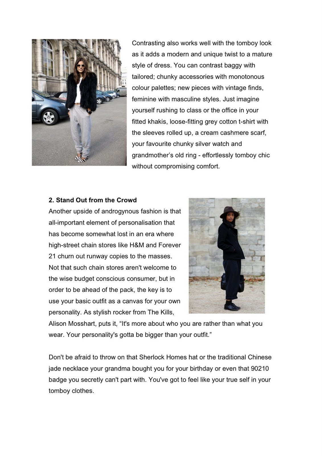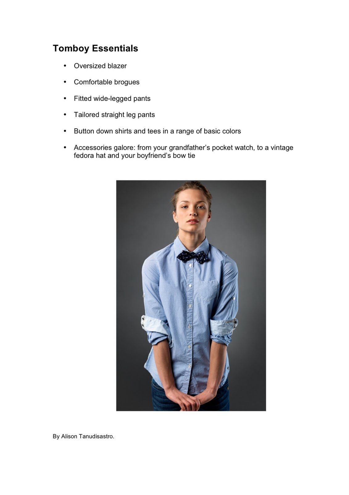 My “how-to-wear the tomboy look” piece for fashion writing class: