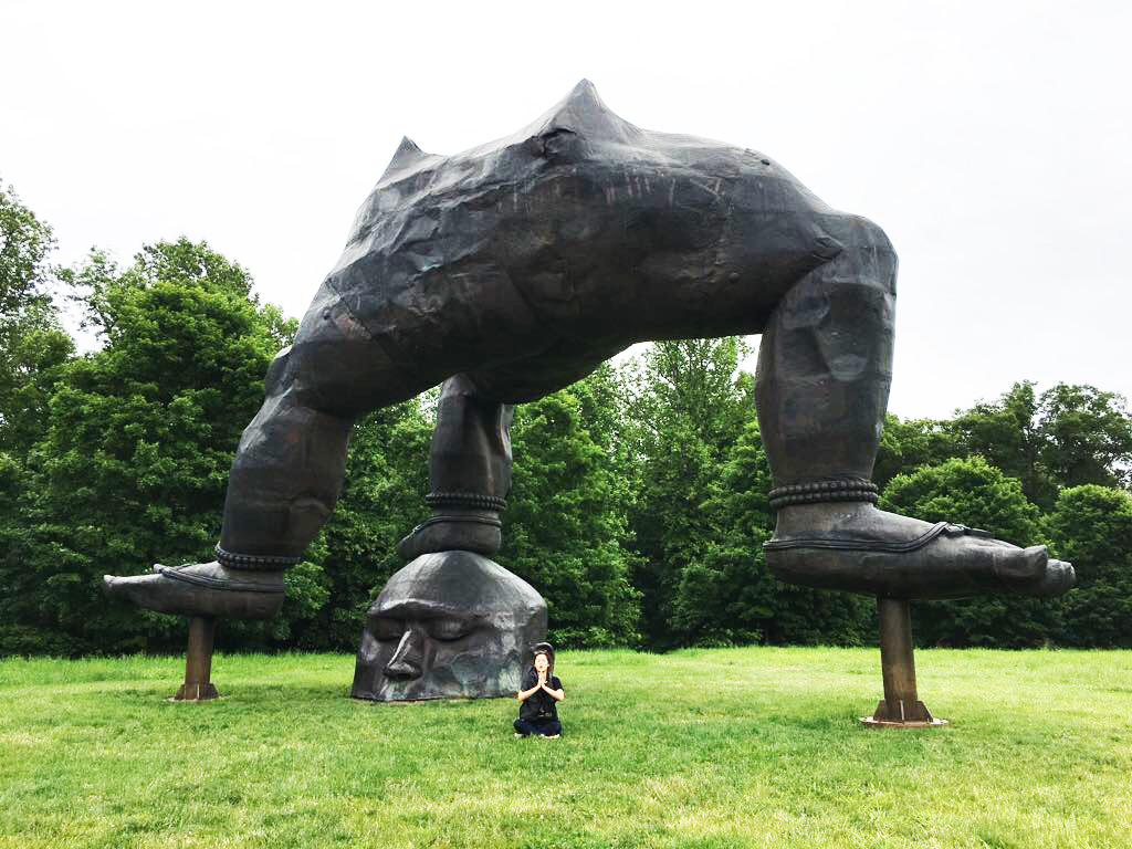 [From top to bottom: Mozart’s Birthday by Mark di Suvero (steel, 1989); Suspended by Menache Kadishman (weathering steel, 1977); Ear by Tomio Miki (aluminium, 1965); Storm King Wavefield by Maya Lin (earth & grass, 2007-8); Three-Legged Buddha by Zhang Huan (steel & copper, 2007); Adonai by Alexander Liberman (steel, 1970-71); Four Corners by Forrest Myers (weathering steel, stainless steel, bronze & concrete, 1969-70)]